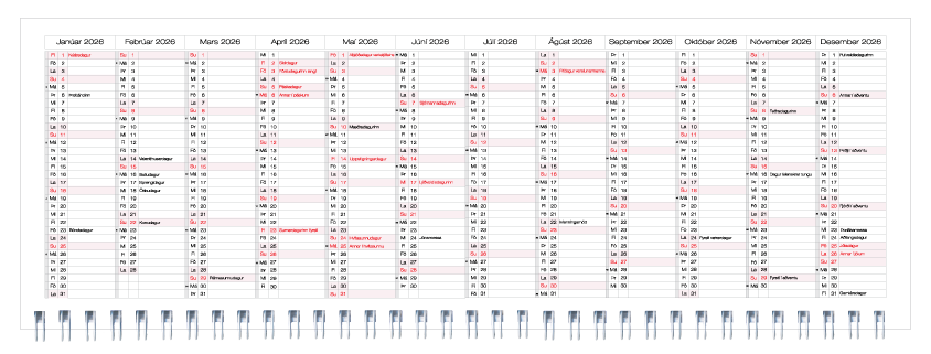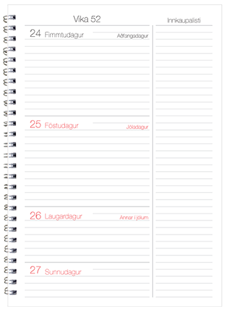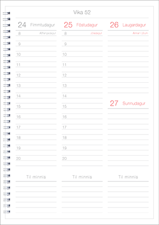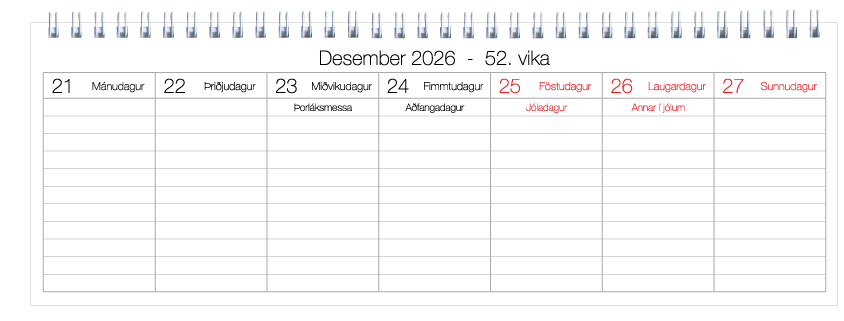 Tímalína | Stærð 20 x 28 cm | Vika á opnu