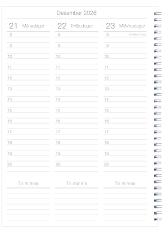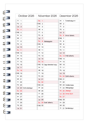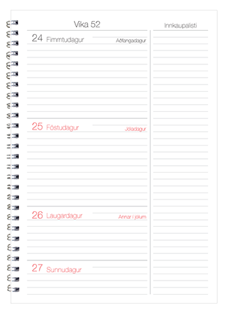 Veggdagatöl - skólaárið (ágúst - júlí) | Stærðir A5, A4 og A3