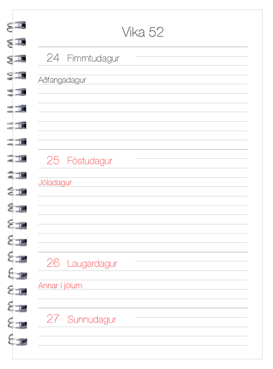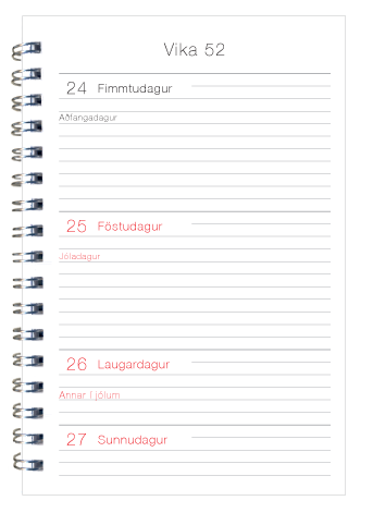 Veggdagatöl - skólaárið (ágúst - júlí) | Stærðir A5, A4 og A3