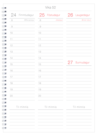 Tímalína | Stærð 20 x 28 cm | Vika á opnu